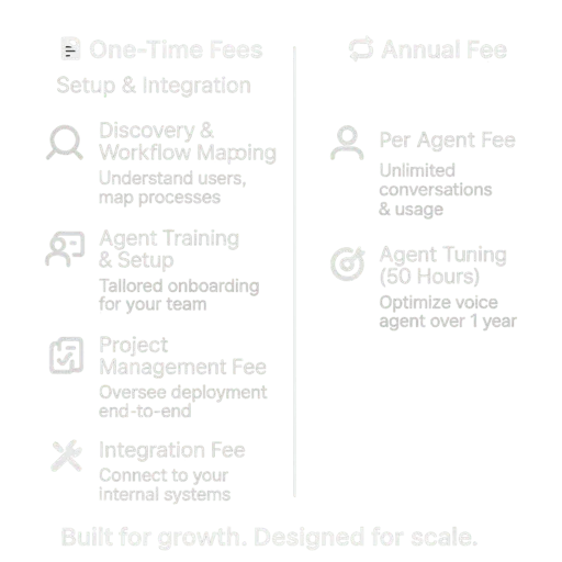 Setup typically takes 7 to 10 business days after we gather your call scripts, FAQs, and integration details. We customize the agent to match your brand voice, services, and compliance requirements before going live.